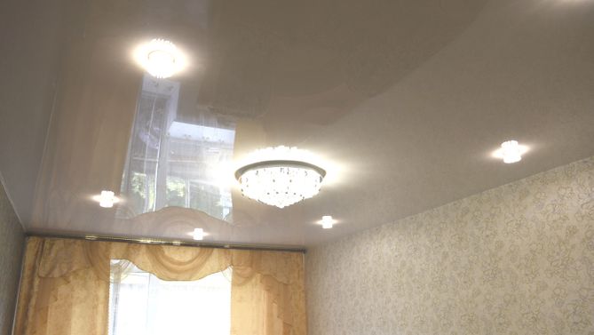 Бесшовный глянцевый натяжной потолок в гостиную 20 м2