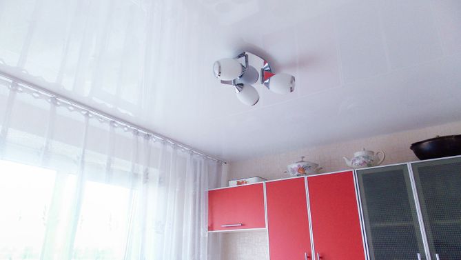 Бесшовный глянцевый натяжной потолок на кухню 9,6 м2
