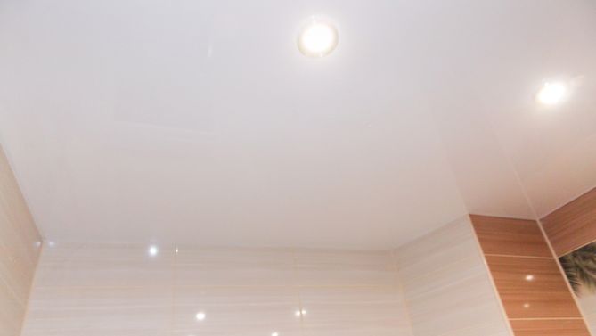 Бесшовный глянцевый натяжной потолок в ванную комнату 4,7 м2