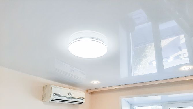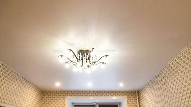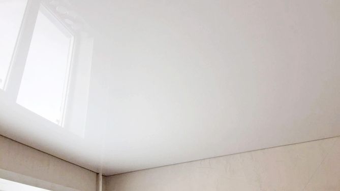 Бесшовный глянцевый натяжной потолок в спальню 11,3 м2