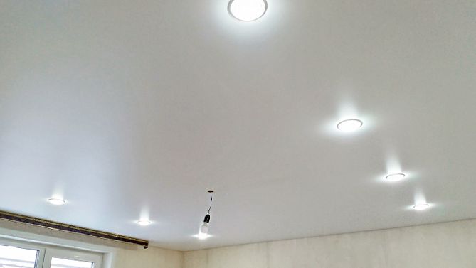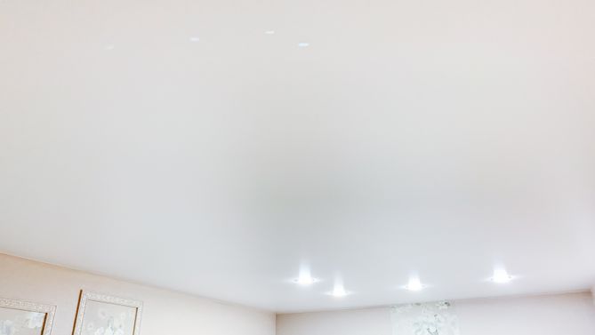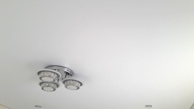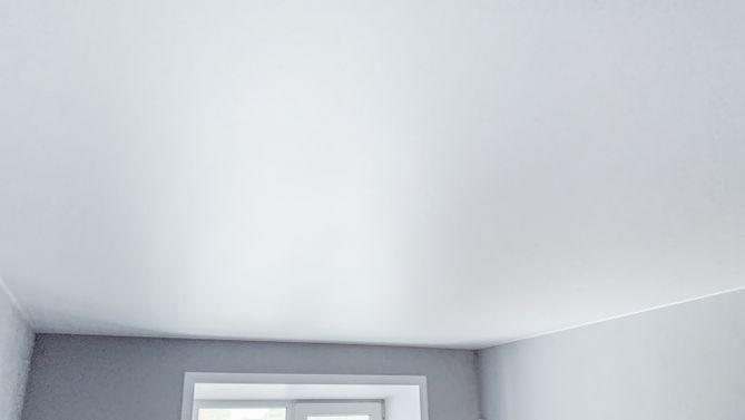 Бесшовный матовый натяжной потолок в спальню 11 м2