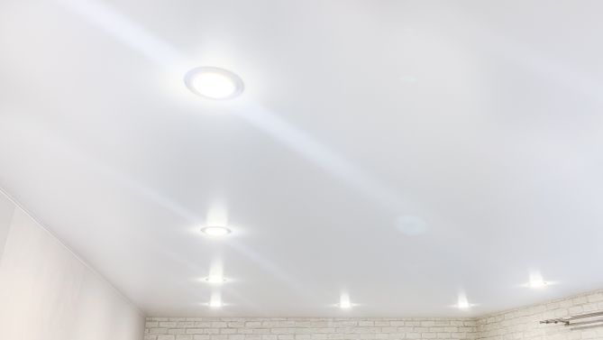 Бесшовный сатиновый натяжной потолок для зала 23,7 м2