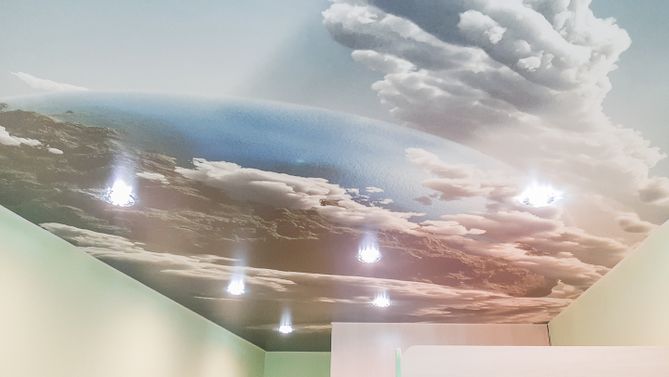 Монтаж потолка в детской 12 м2, полотно VISP ART8195 (1.95)
