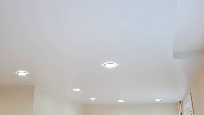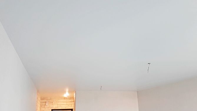 Бесшовный сатиновый натяжной потолок в квартиру 38,1 м2
