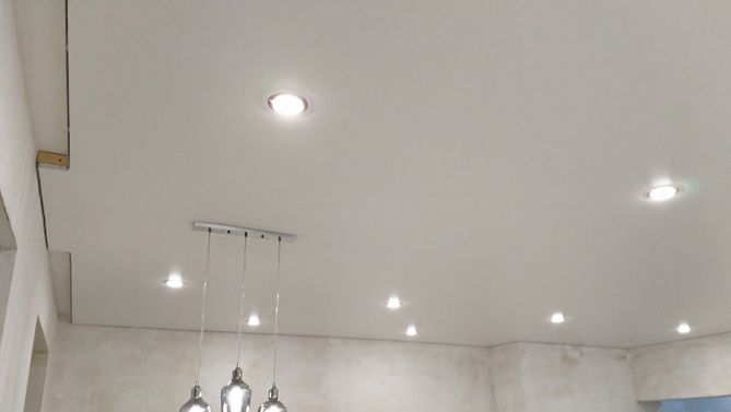 Монтаж потолка в гостиной 16 м2, полотно VISP M9001 (4.35)