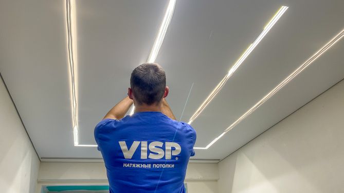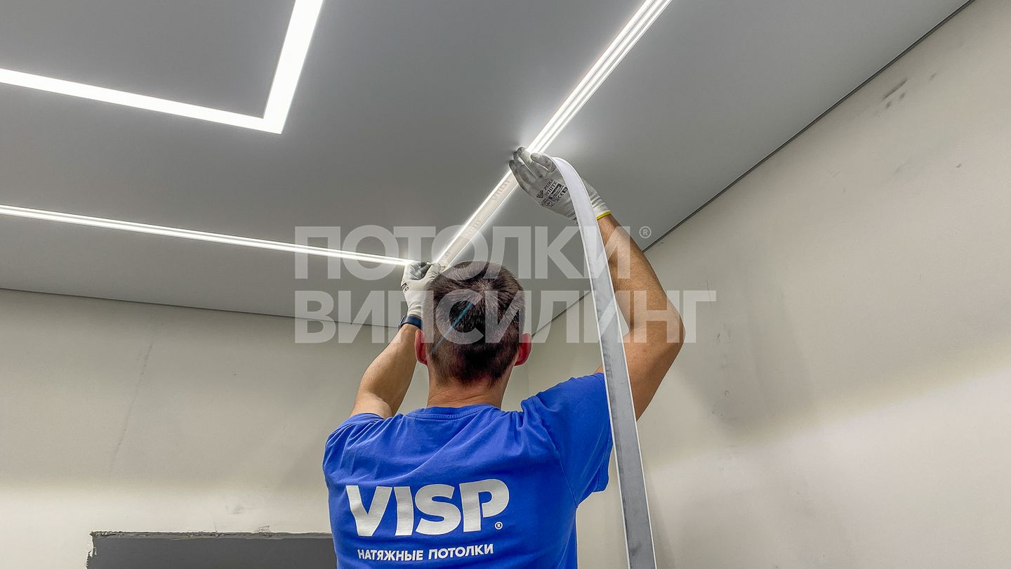 Монтаж потолка с профилем VISP BLACK 241 и полотном VISP M9001 (6.25) 32 м2 в квартире