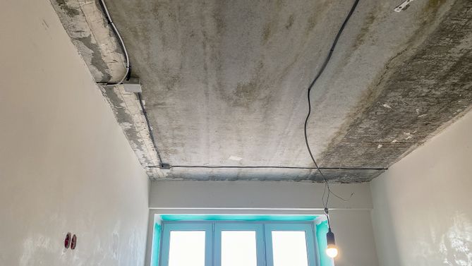 Натяжное полотно скрывает электропроводку, коммуникации и дефекты базового потолка