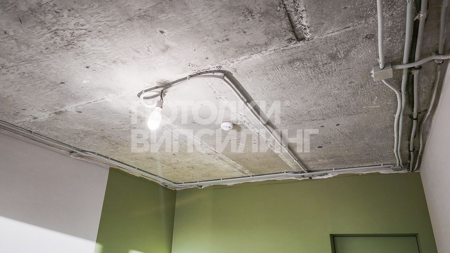 Натяжное полотно скрывает электропроводку, коммуникации и дефекты базового потолка