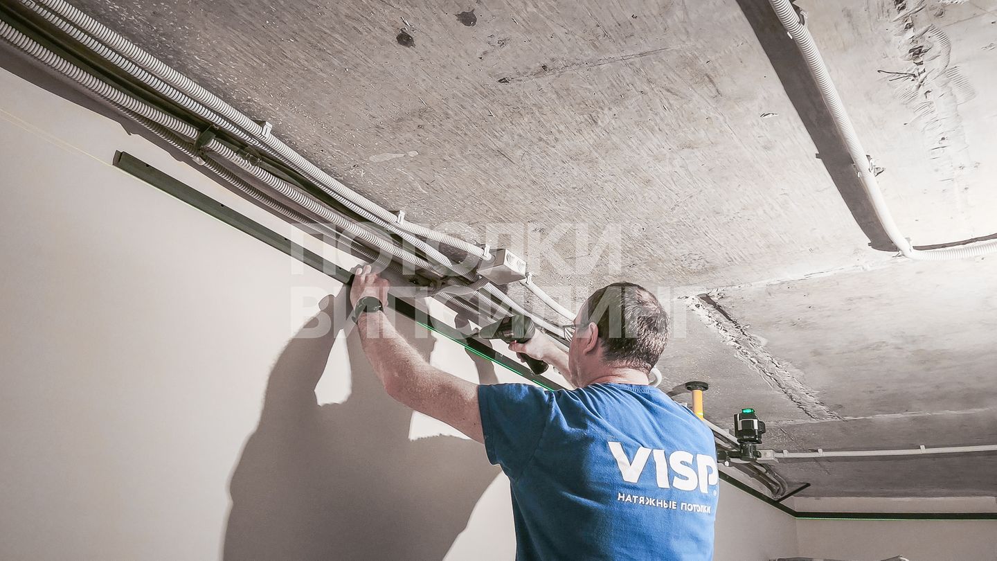 Монтаж потолка на кухне 24 м2 с использованием пленки VISP M9001 (4.90)