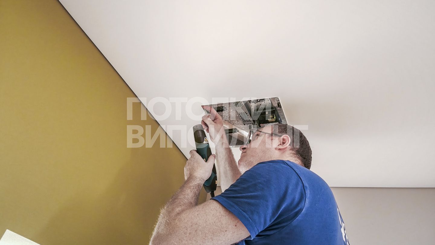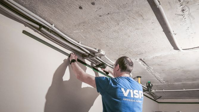 Монтаж потолка в гостиной 16 м2 с использованием пленки VISP M9001 (3.25)