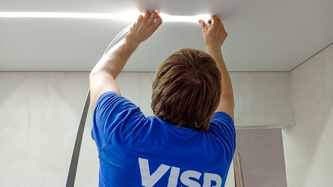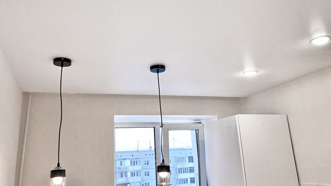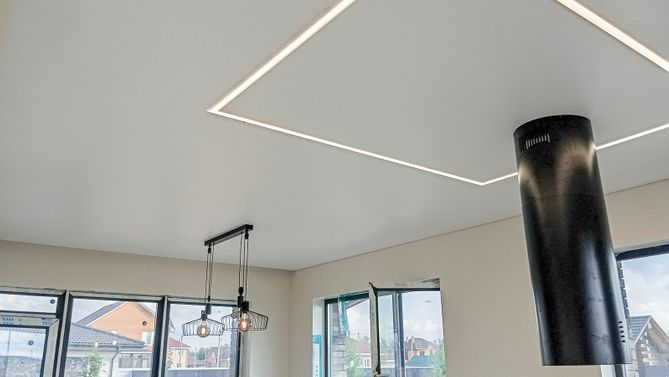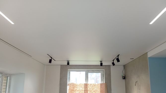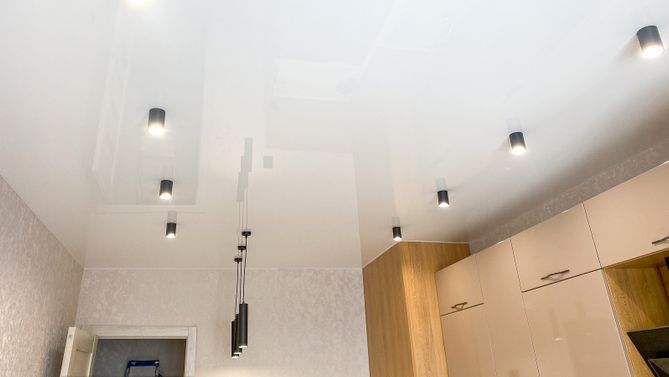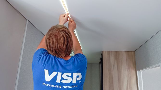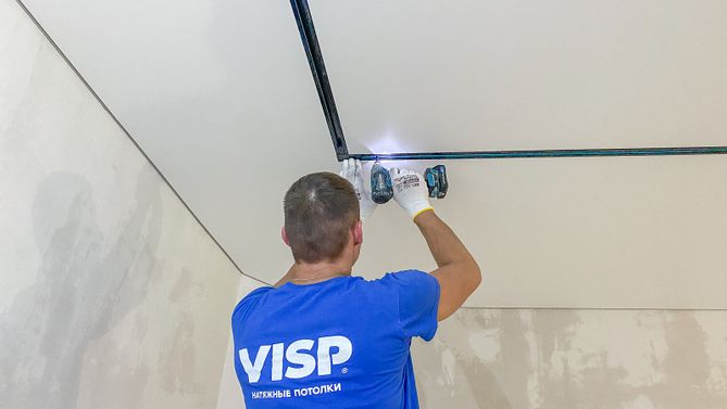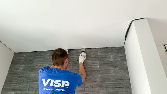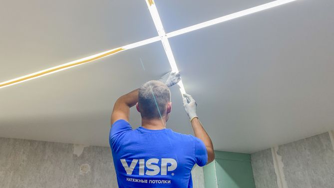 Монтаж потолка на кухне 8 м2, полотно VISP M9001 (2.60)