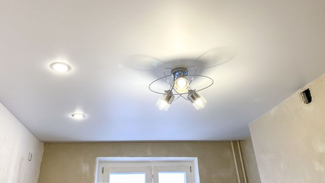 Монтаж потолка на кухне 9 м2, полотно VISP S9020 (2.60)