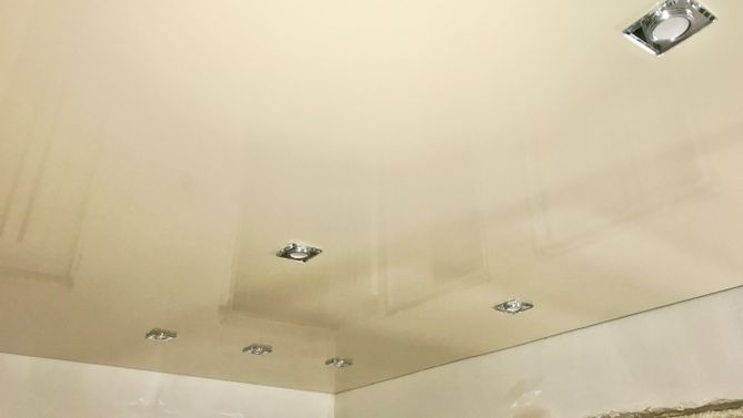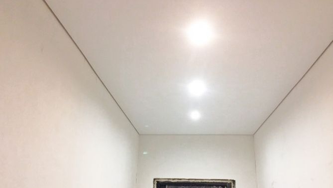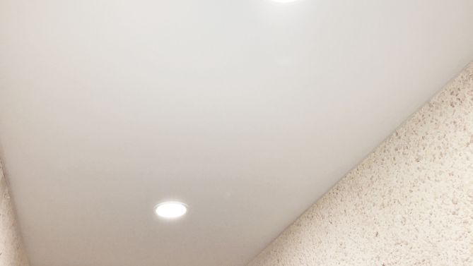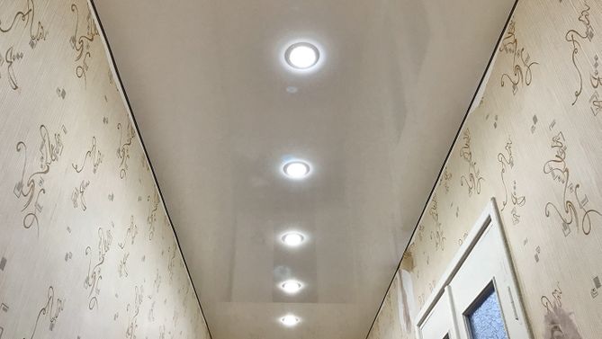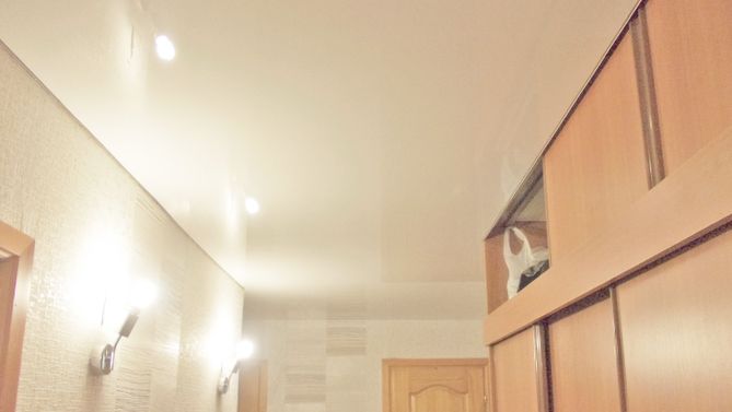 Бесшовный глянцевый натяжной потолок в коридор 6,9 м2