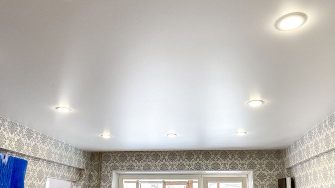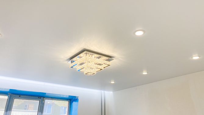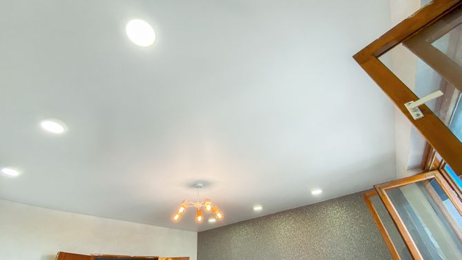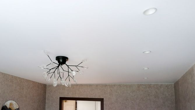 Монтаж потолка для зала 17 м2, полотно VISP M9001 (4.35)