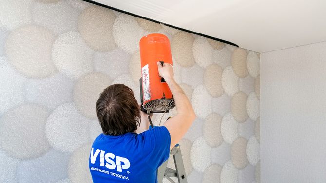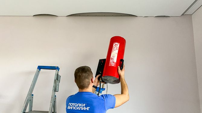Монтаж потолка для зала 15 м2, полотно VISP L9001 (3.50)