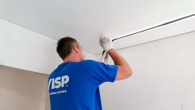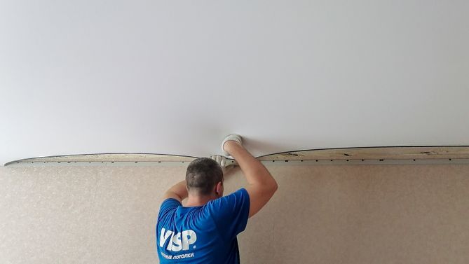 Монтаж потолка для зала 17 м2, полотно VISP L9001 (3.25)