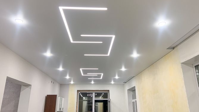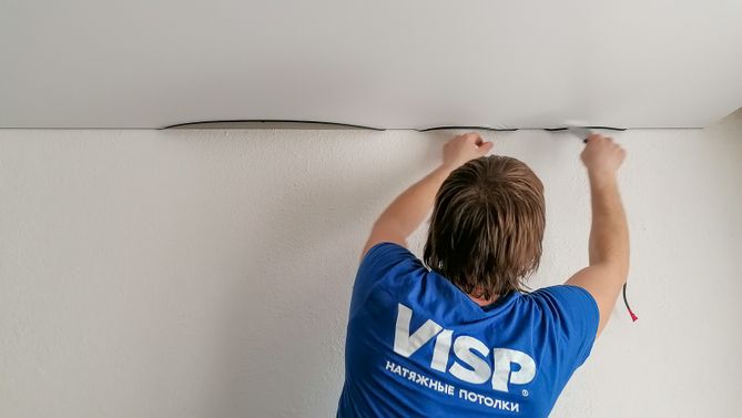 Монтаж потолка для зала 17 м2, полотно VISP M9001 (3.50)