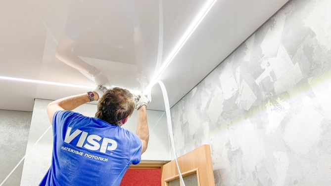 Монтаж потолка в детской 8 м2, полотно VISP L9001 (2.60)
