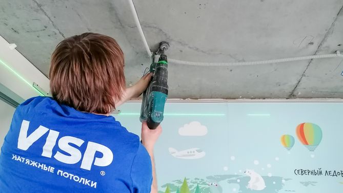 Монтаж потолка в детской 15 м2, полотно VISP M9001 (3.80)