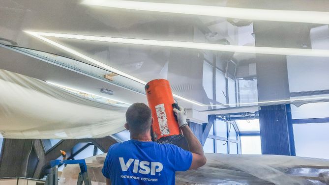 Монтаж потолка для зала 18 м2, полотно VISP L9001 (4.35)