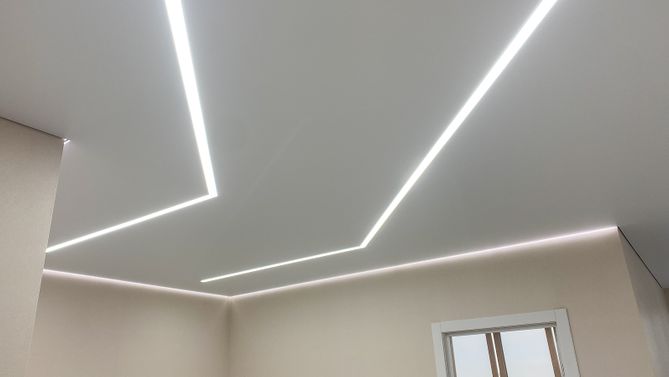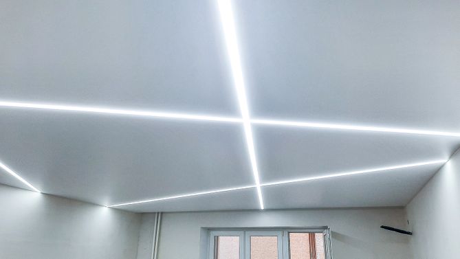 Монтаж потолка в гостиной 21 м2, полотно VISP M9001 (3.80)