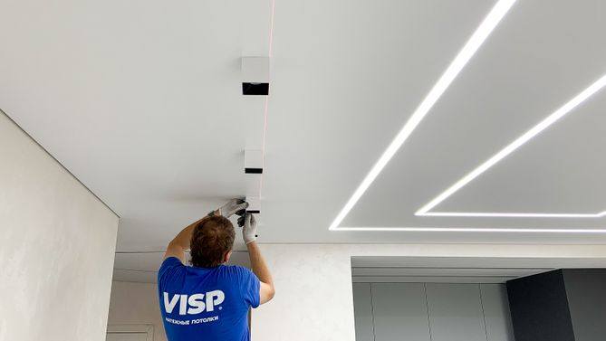 Монтаж потолка для зала 19 м2, полотно VISP M9001 (3.80)