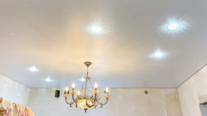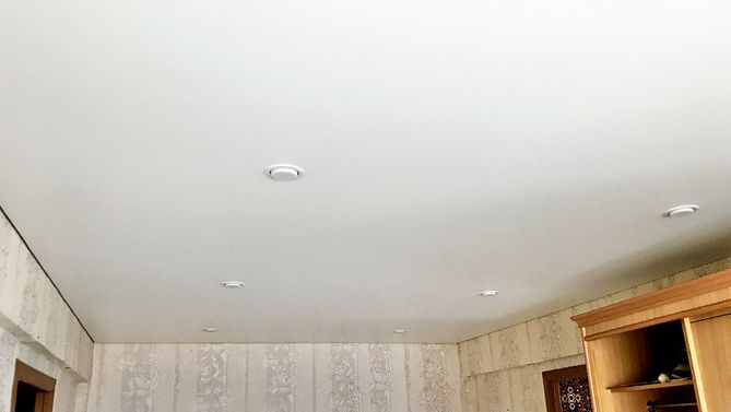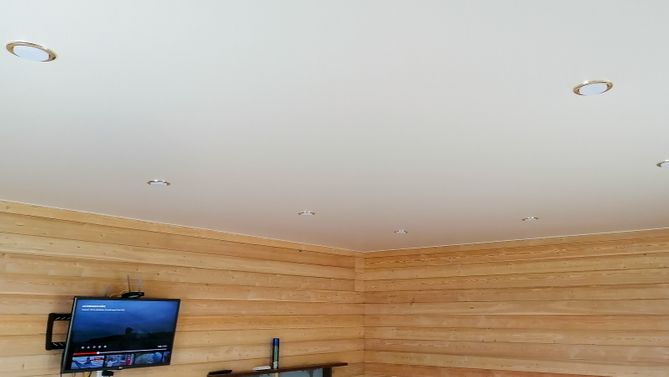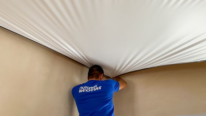Монтаж потолка в спальне 15 м2, полотно VISP S9020 (2.60)