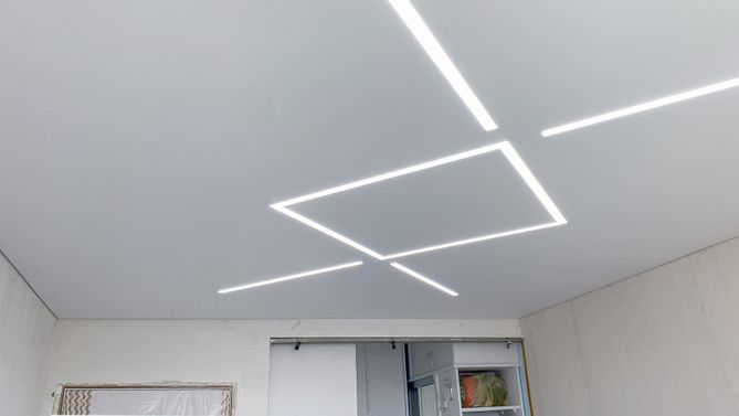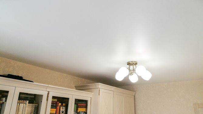 Монтаж потолка в гостиной 21 м2, полотно VISP S9057 (5.45)