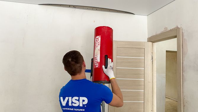 Монтаж потолка для зала 17 м2, полотно VISP S9020 (4.35)