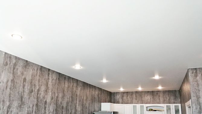 Бесшовный сатиновый натяжной потолок на кухню 9 м2