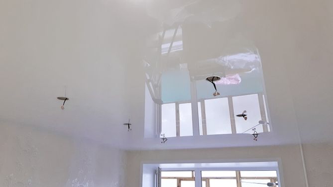 Бесшовный глянцевый натяжной потолок в квартиру 17,7 м2