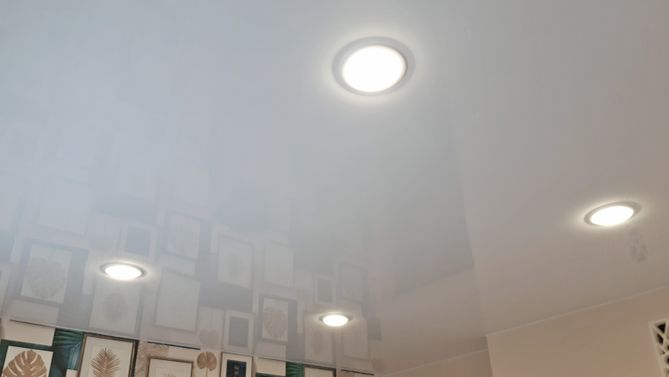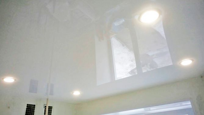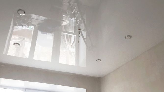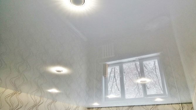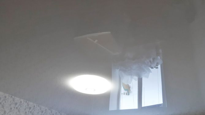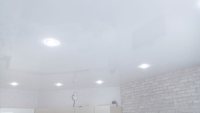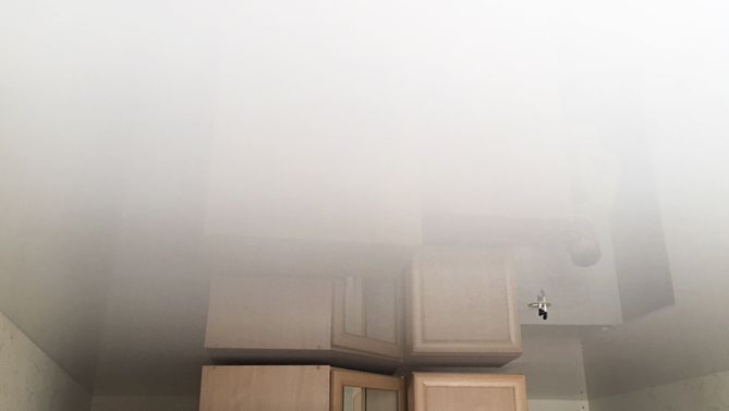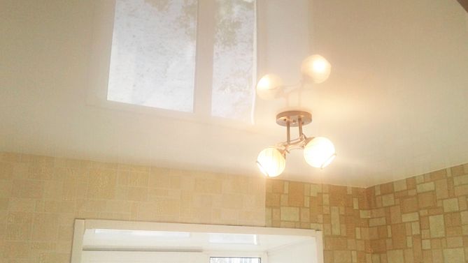 Бесшовный глянцевый натяжной потолок на кухню 5,3 м2