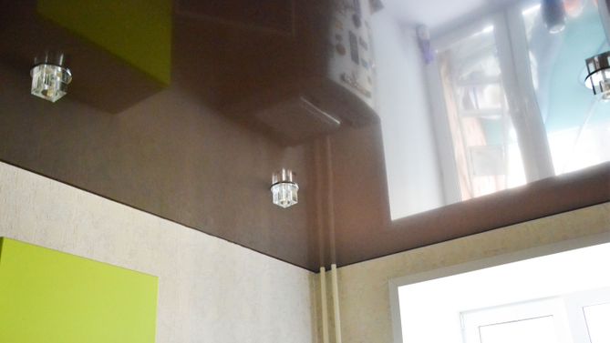 Бесшовный глянцевый натяжной потолок на кухню 6 м2