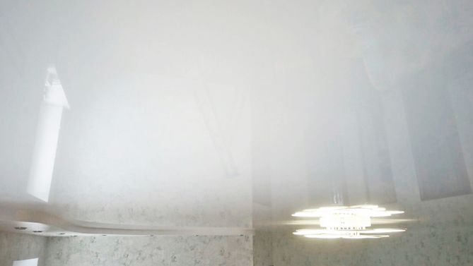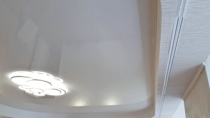 Бесшовный глянцевый натяжной потолок в квартиру 19,2 м2