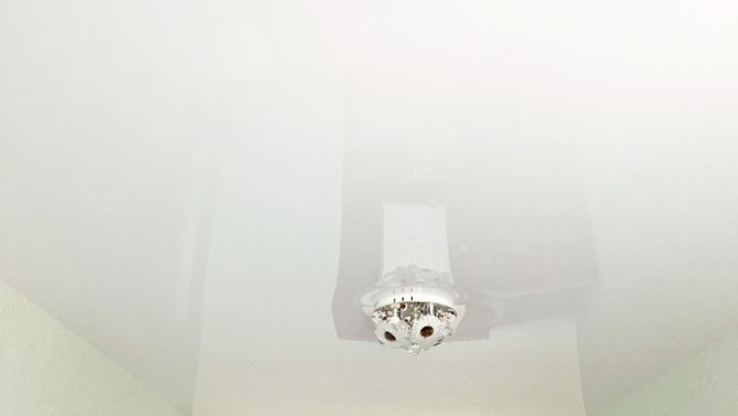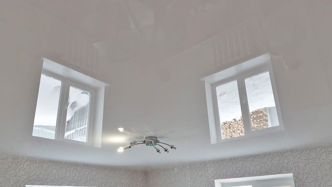 Бесшовный глянцевый натяжной потолок в спальню 12,5 м2