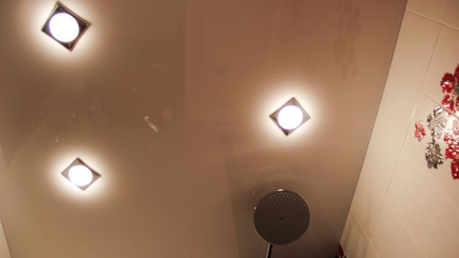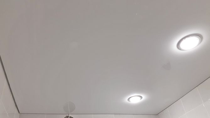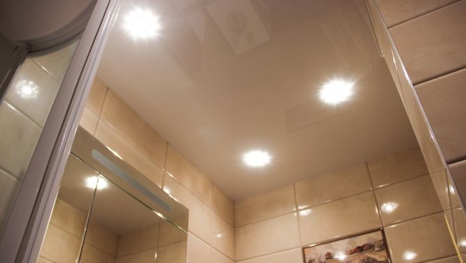 Бесшовный глянцевый натяжной потолок в ванную комнату 3,6 м2