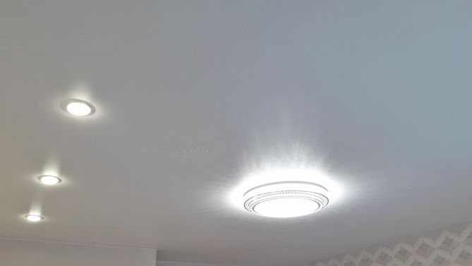 Монтаж потолка в гостиной 14 м2, полотно VISP M9001 (3.25)