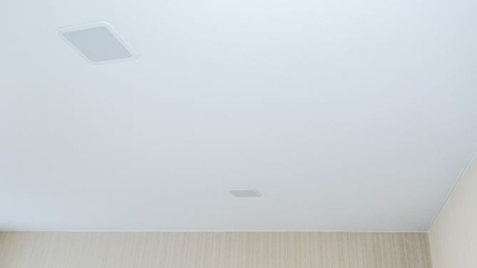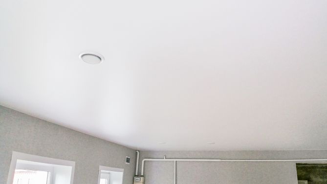 Монтаж потолка в деревянном доме 50 м2, полотно VISP M9001 (4.90)