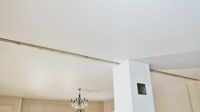 Монтаж потолка в гостиной 19 м2, полотно VISP M9001 (4.35)