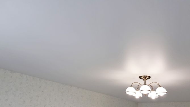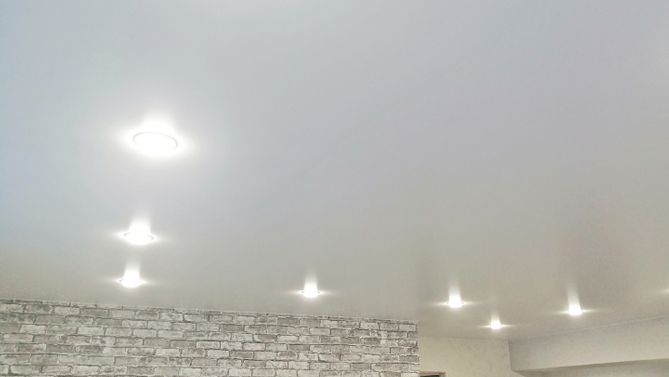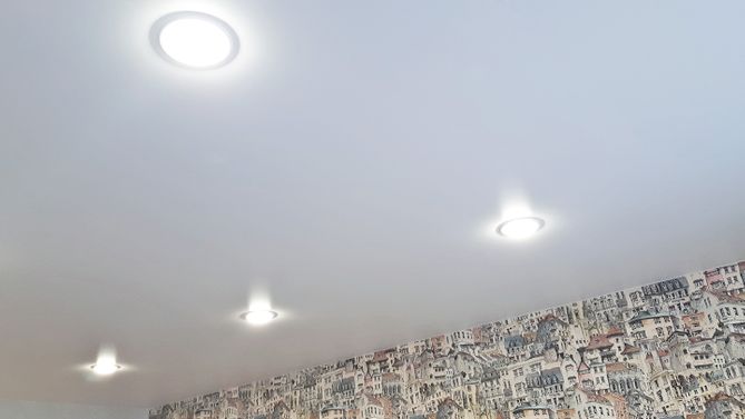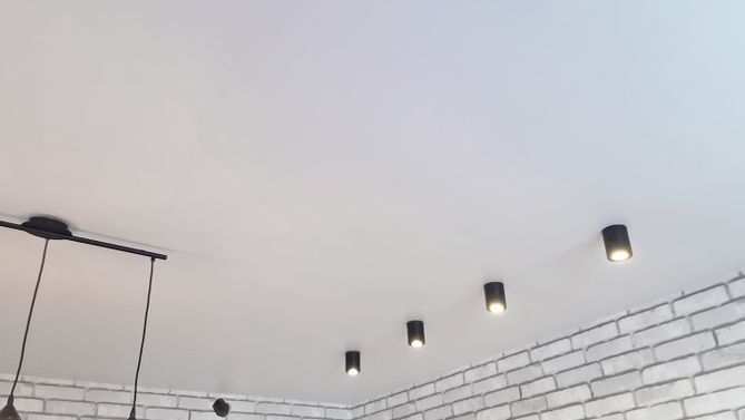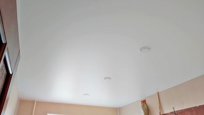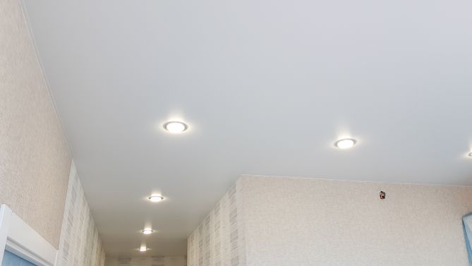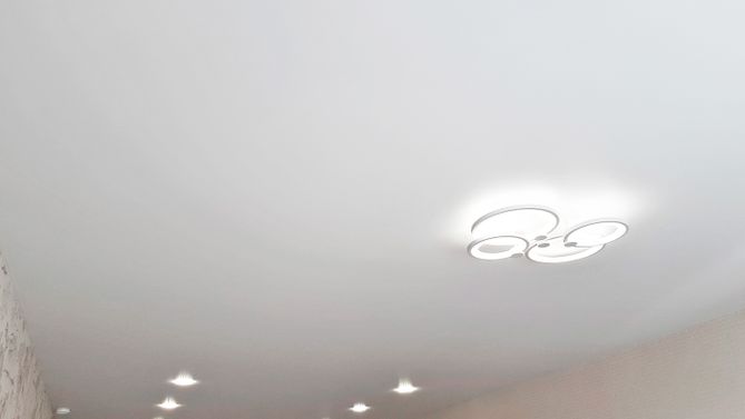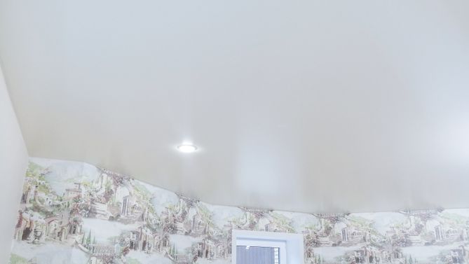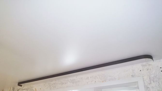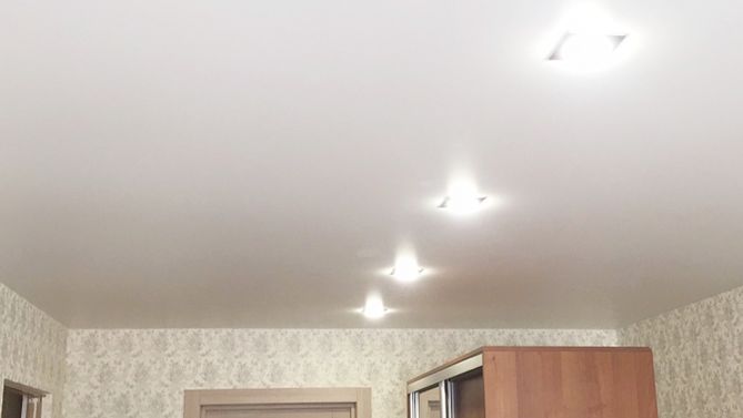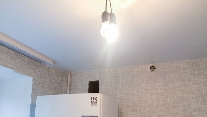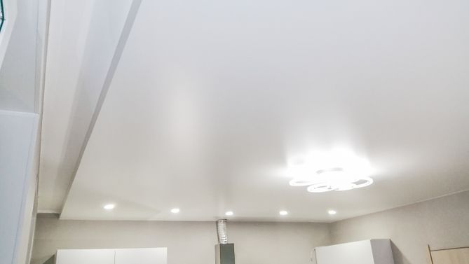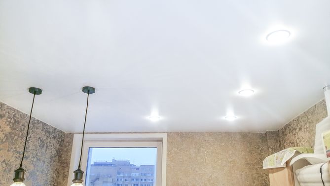 Бесшовный сатиновый натяжной потолок на кухню 9 м2