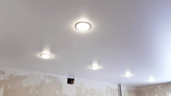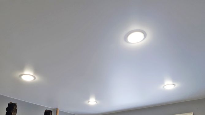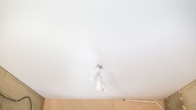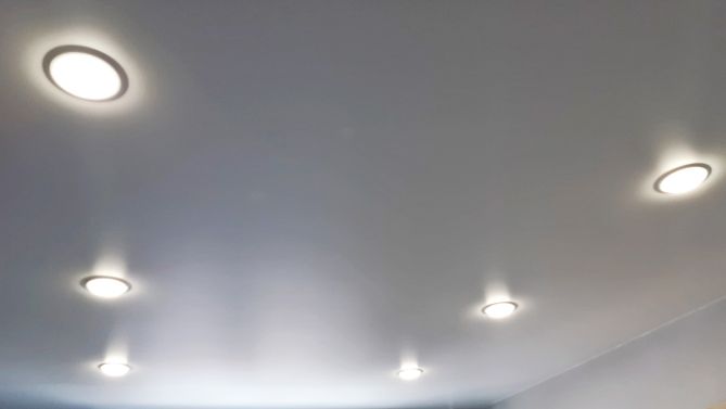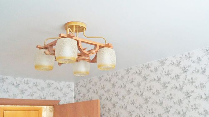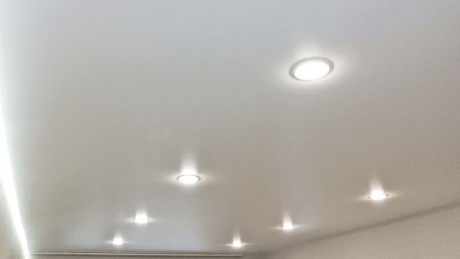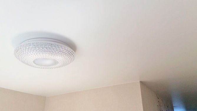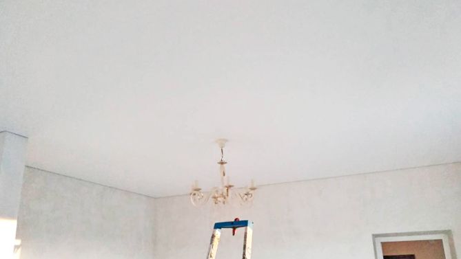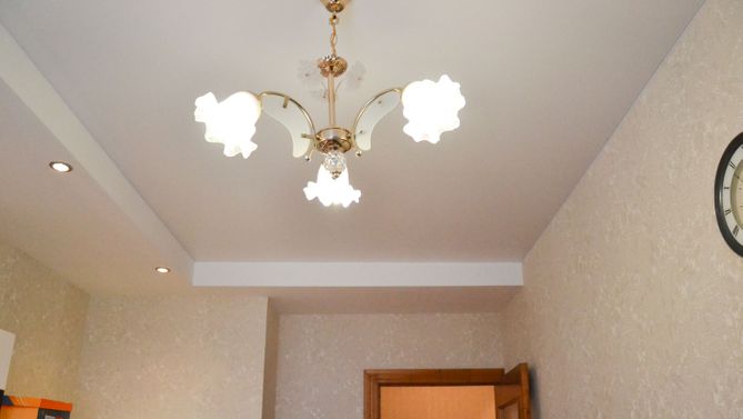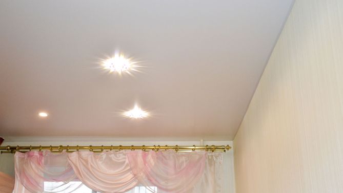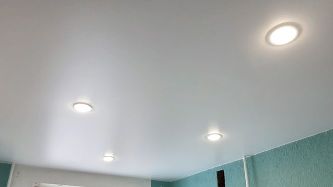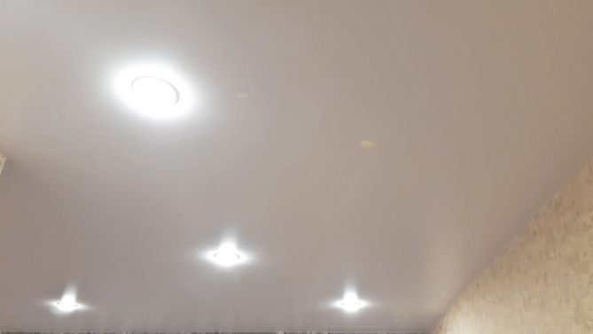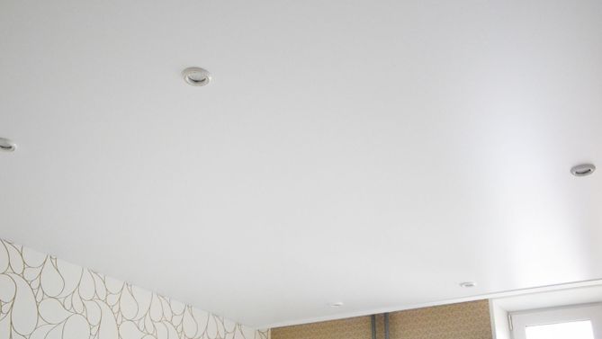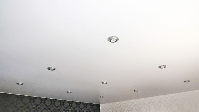 Бесшовный сатиновый натяжной потолок на кухню 9 м2