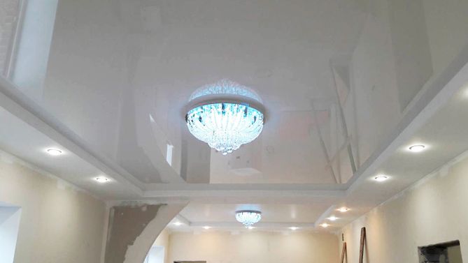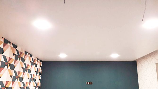 Бесшовный сатиновый натяжной потолок для зала 17,3 м2