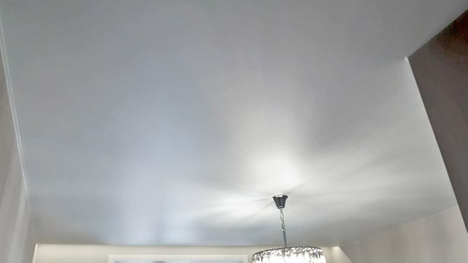 Бесшовный сатиновый натяжной потолок на кухню 10,5 м2
