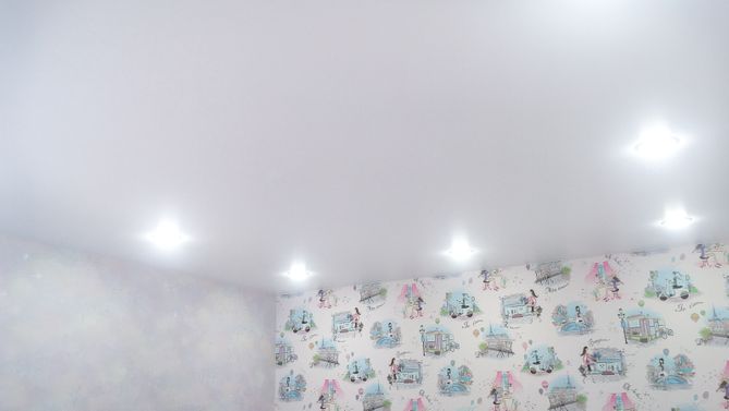 Бесшовный сатиновый натяжной потолок в детскую 9,1 м2