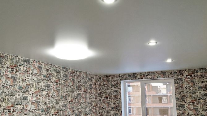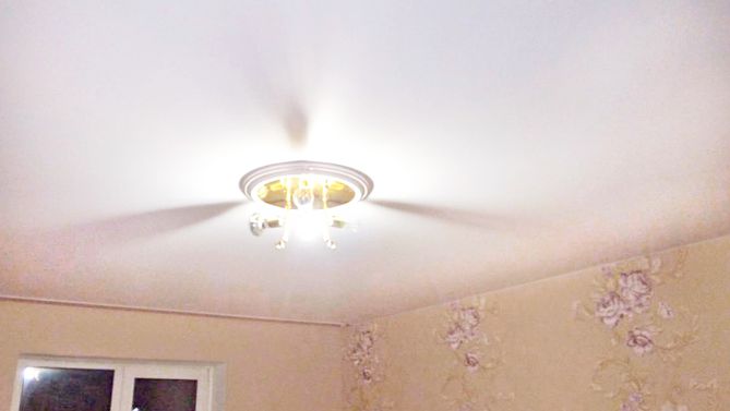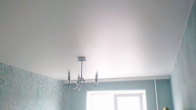 Бесшовный сатиновый натяжной потолок в квартиру 14,2 м2