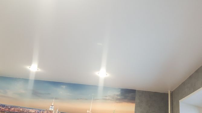 Бесшовный сатиновый натяжной потолок на кухню 7,7 м2