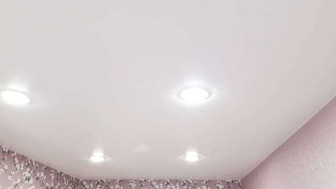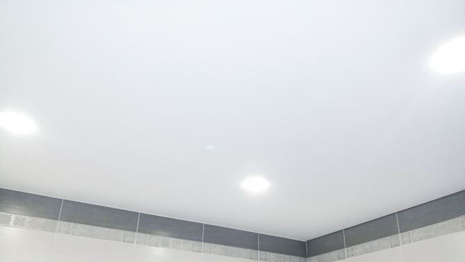 Бесшовный сатиновый натяжной потолок в ванную комнату 4,6 м2
