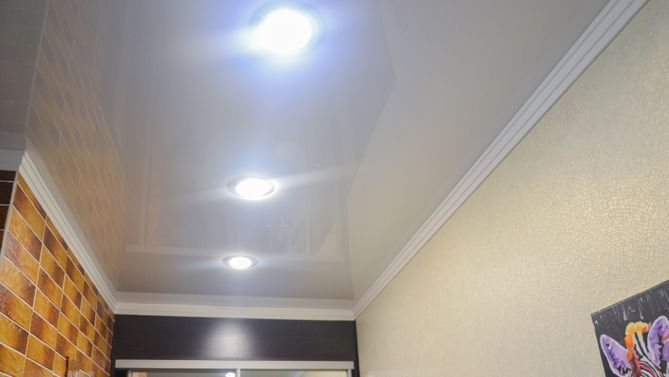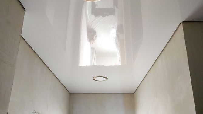 Бесшовный глянцевый натяжной потолок в прихожую 8,9 м2