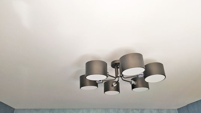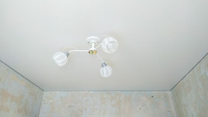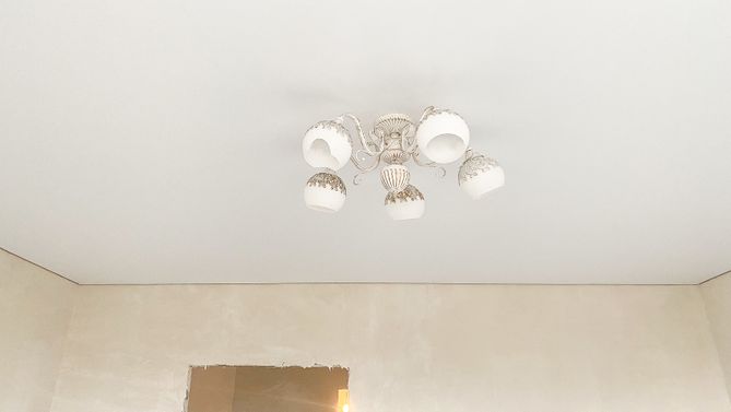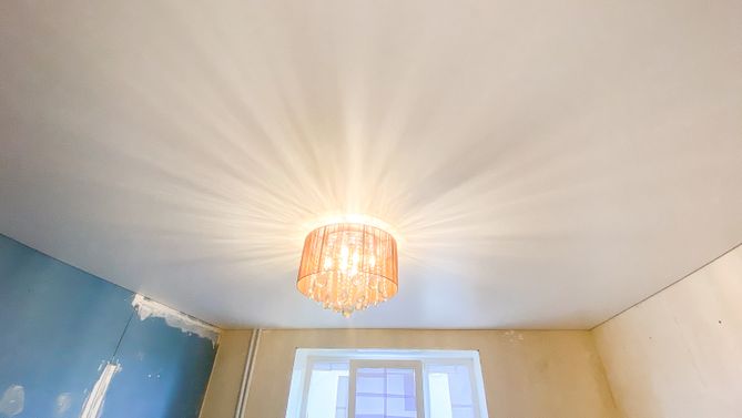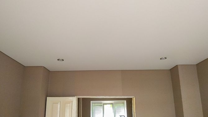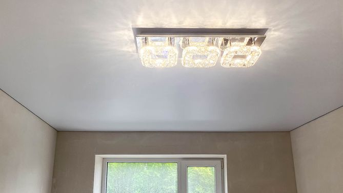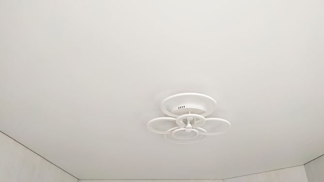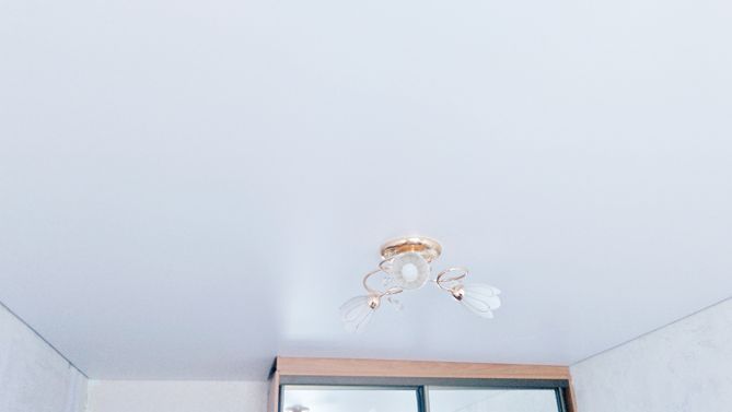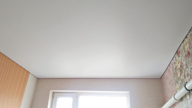 Бесшовный матовый натяжной потолок в спальню 8,6 м2