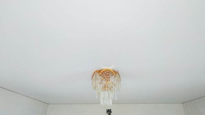 Монтаж потолка в гостиной 15 м2, полотно VISP M9001 (3.80)